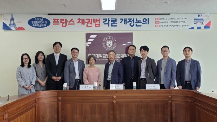 법학연구소 공동학술대회(한불민사법학회) 개최(2025.9.27.) 페이지 정보 작성자관리자 조회 92회 작성일 2026-04-03 15:31:59 댓글 0 본문 □ 일 시 : 2025년 9월 27일(토) 13:00 ~ 18:00□ 장 소 : 충북대학교 법학전문대학원 723호□ 주 제 : 프랑스 채권법 각론 개정논의(임대차, 도급, 위임, 매매)□ 주 최 : 한불민사법학회 / 충북대학교 법학연구소 목록 댓글목록 등록된 댓글이 없습니다.