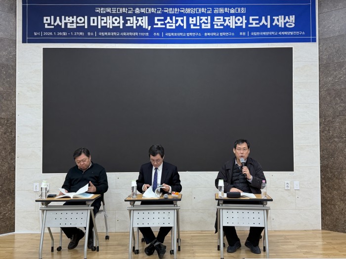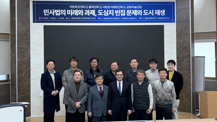 법학연구소 공동학술대회(목포대학교) 개최(2026.1.26.~27.) 페이지 정보 작성자관리자 조회 91회 작성일 2026-04-03 15:37:16 댓글 0 본문 □ 일 자 : 2026년 1월 26일(월) ~ 27일(화)□ 장 소 : 국립목포대학교 사회과학대(A8) 1101호 □ 주 제 : 민사법의 미래와 과제, 도심지 빈집 문제와 도시 재생□ 주 최 : 국립목포대학교 법학연구소, 충북대학교 법학연구소□ 후 원 : 국립한국해양대학교 세계해양발전연구소 목록 댓글목록 등록된 댓글이 없습니다.